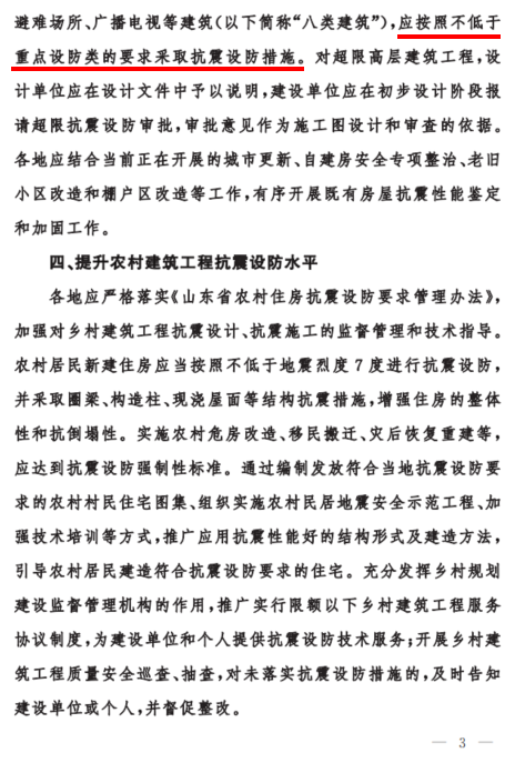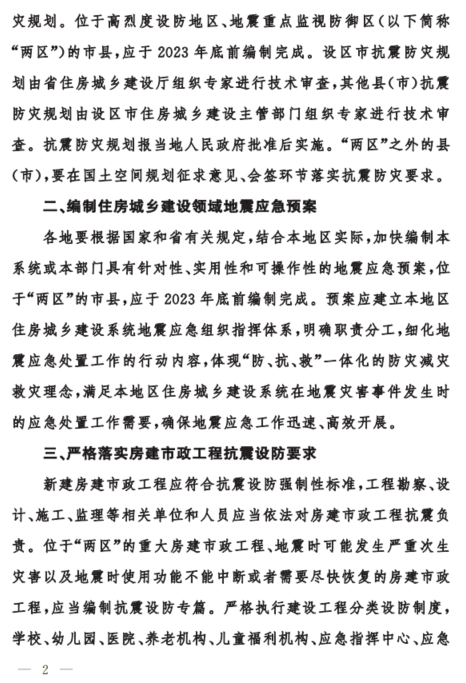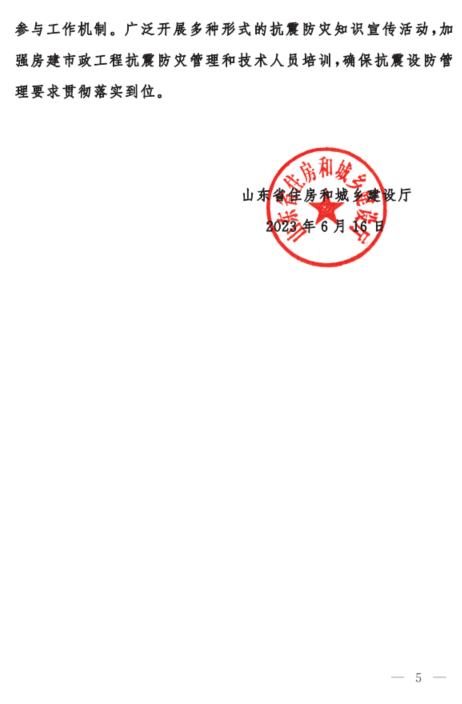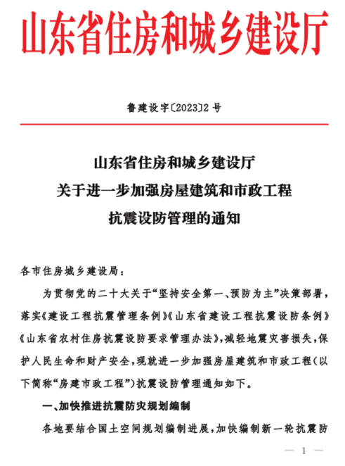 《關(guān)于進一步加強房屋建筑和市政工程抗震設(shè)防管理的通知》(魯建設(shè)字【2023】2 號):